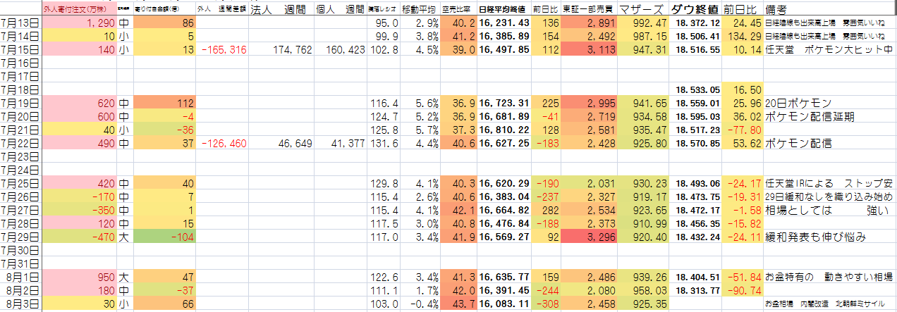 2016/08/03 - たか○さんの株式ブログ。タイトル:「お盆相場」 本文:お盆前にすでに お盆っぽい夏枯れ相場か。仕掛けはいってますね。ある目標金額で調整済めば 上がるのも早まるんかな。とりあえず 様子見ですね。