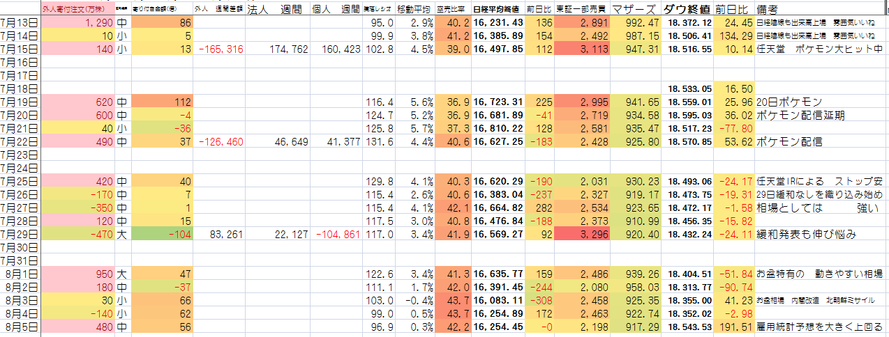 2016/08/06 - たか○さんの株式ブログ。タイトル:「アメリカ調子いいみたいね」 本文:これは 日本にとってはやりづらい相場になったかもねえ。日本は別によくねーからなあ。お盆だし様子見継続かな。いやデイとかならありか日銀も買うみたいだしその辺はプラスか。