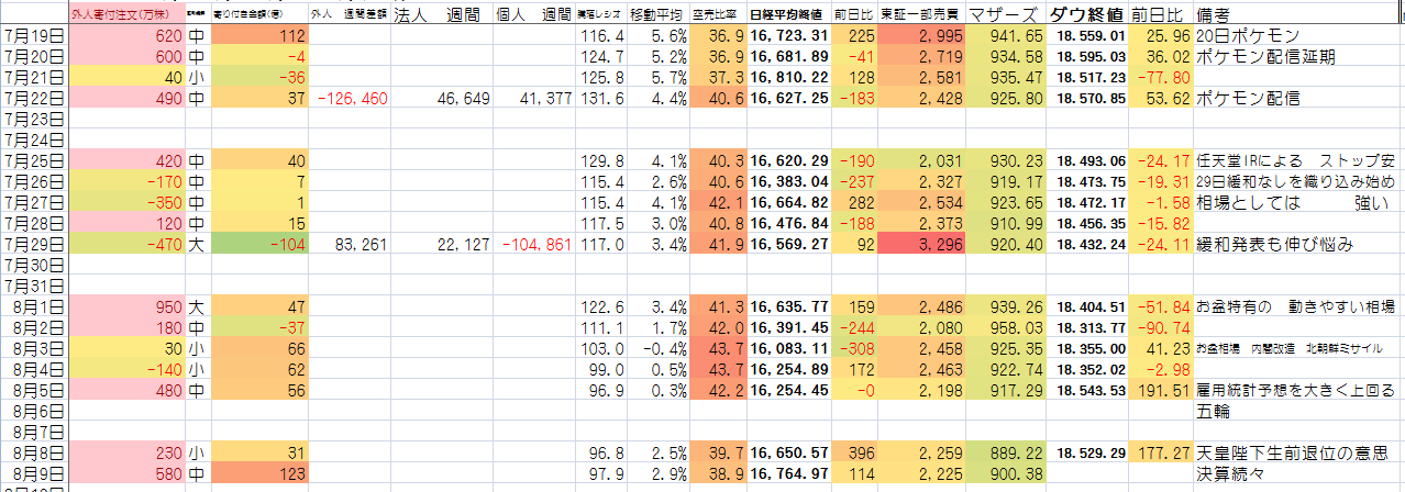 2016/08/09 - たか○さんの株式ブログ。タイトル:「しっくりきている手法(こういう時限定)」 本文:とりあえずデータ。そして最近しっくりきている手法は。とにかく 過去にこだわること。目を付ける銘柄は いい材料の位置にいること。メインでなくてもいいけど。とにかく材料性がしっかりしていること。その銘柄の