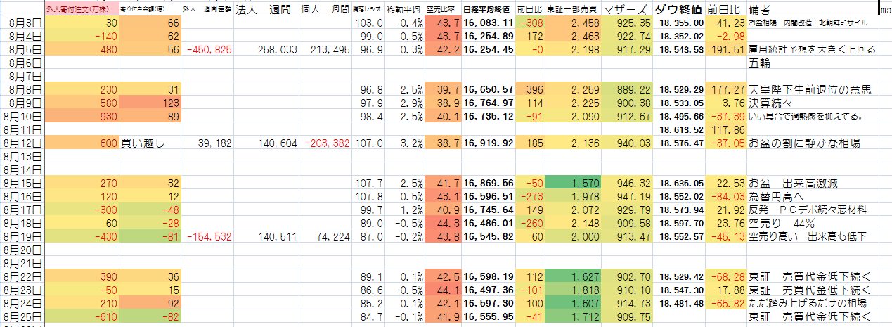2016/08/25 - たか○さんの株式ブログ。タイトル:「無意味な緩和だね!」 本文:結局 外人が売ってきてる株買ってるだけじゃないの!いや、外人が合わせて売ってきてるだけか。どっちにしても 外人の株を高く買ってやる制度が 政策みたいだね。腹がたつが、そんなこと言っても