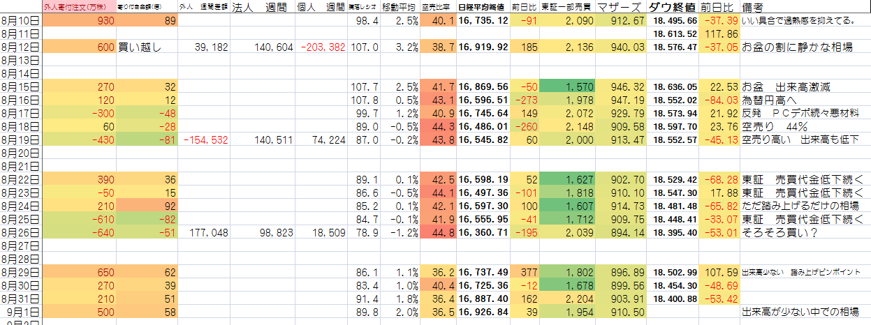 最近の相場は 出来高が少なめ。肝心な部分を国が支えてる形か。