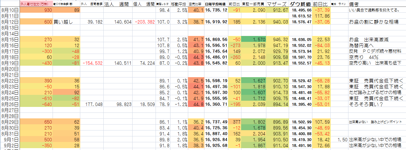 2016/09/03 - たか○さんの株式ブログ。タイトル:「相場環境がよくわからない。」 本文:いいのか悪いのか。とりあえずアメリカの指数に素直に反応してる感じか。