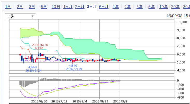 ここ3ヶ月チャートは、落ちそうで落ちないんよね・・・