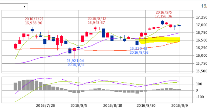あ、この日経のチャート 変態さんが先日読んだ通りのパターンになってるね。