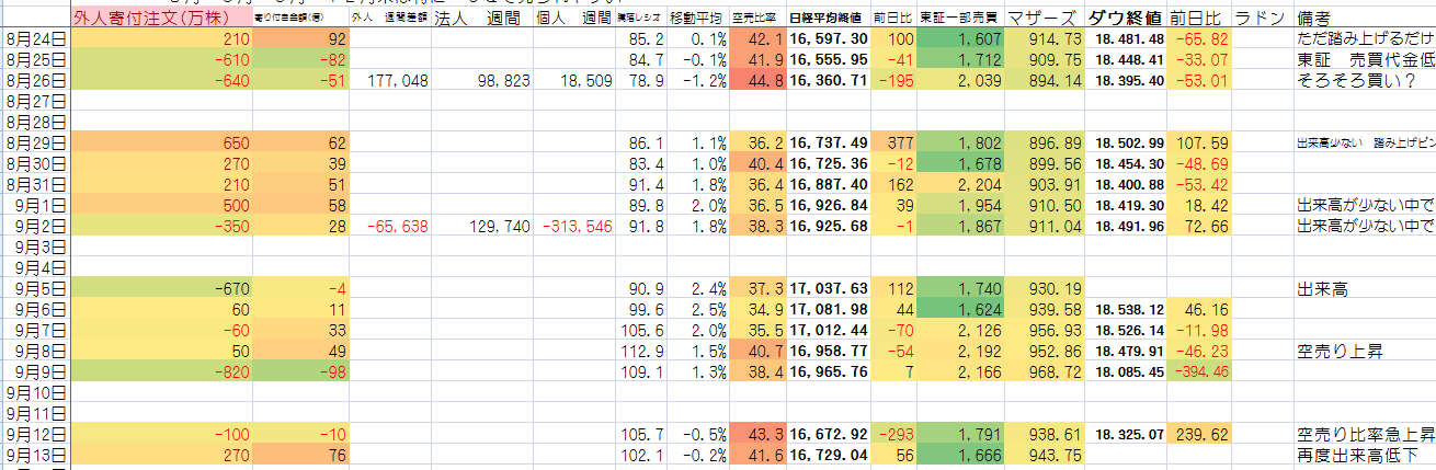 2016/09/13 - たか○さんの株式ブログ。タイトル:「データ集計」 本文:金曜は一回凍りついたけどwww何かしらの懸念が 和らいだってとこか。あるいは とりあえずは安定に戻った。あるいは とりあえず目をつむったか。懸念はあるけど 目先は