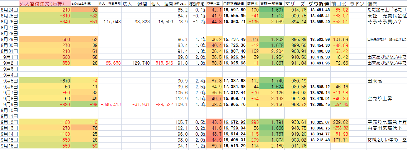 2016/09/16 - たか○さんの株式ブログ。タイトル:「データ集計」 本文:あれ、思ったよりも 空売り買い戻されてるね。やっぱ安易な空売りだったのかな。後は特記事項なし。空売りがここまで戻されると 来週はどうなんだろう。三連休はさんでの だから、あまり今の価格は関係ねーなー