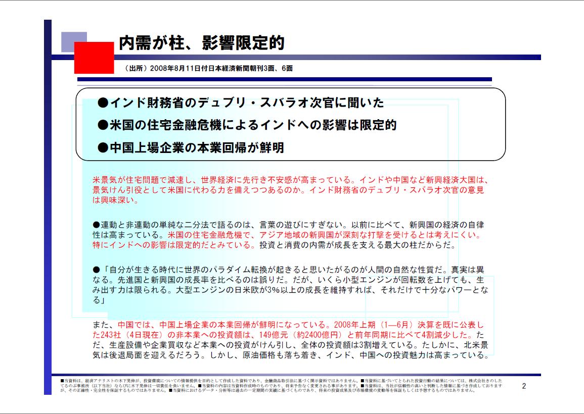 ●米国の住宅金融危機によるインドへの影響は限定的