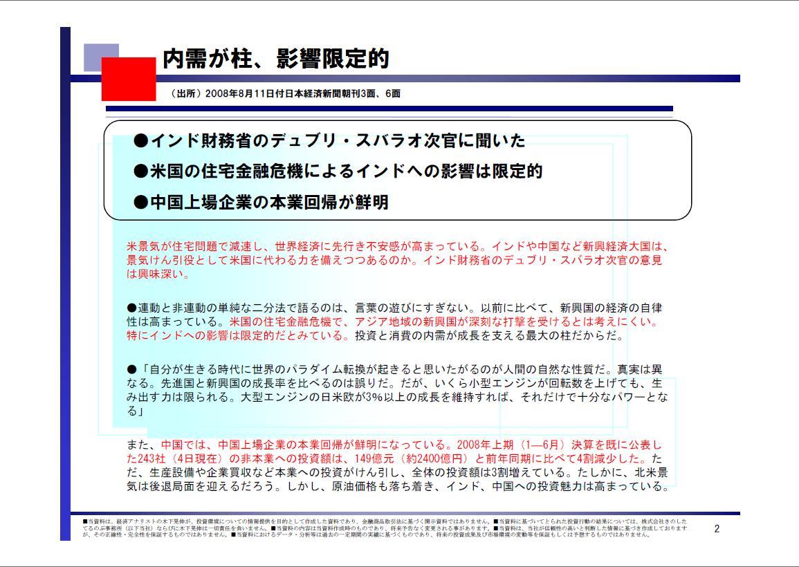 しかし、原油価格も落ち着き、インド、中国への投資魅力は高まっている。