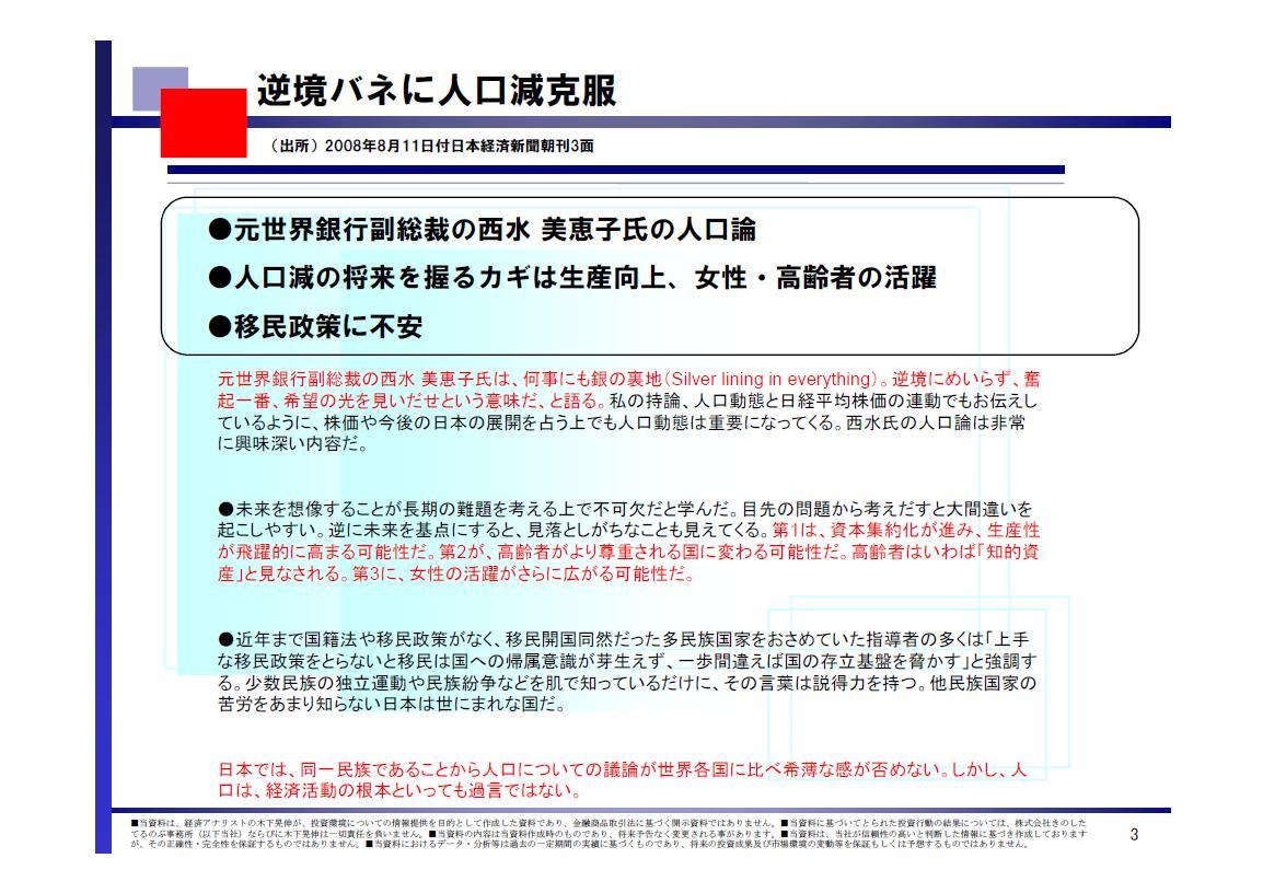 西水氏の人口論は非常に興味深い内容だ。