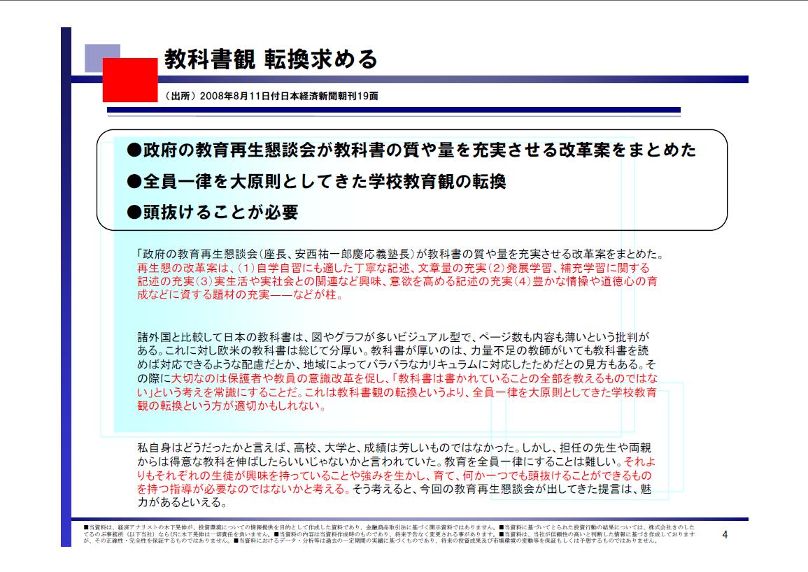 ●政府の教育再生懇談会が教科書の質や量を充実させる改革案をまとめた