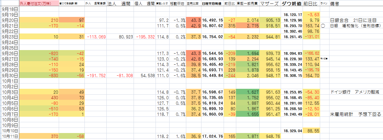 2016/10/11 - たか○さんの株式ブログ。タイトル:「データ集計」 本文:ここ最近は