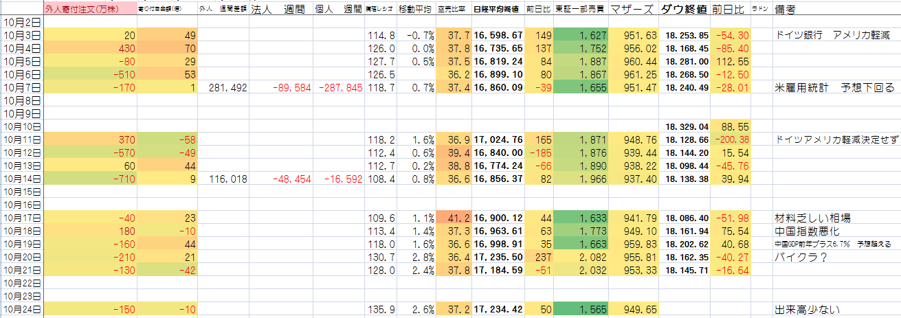 2016/10/24 - たか○さんの株式ブログ。タイトル:「データ集計」 本文:データ更新です。 特記事項は出来高くらいかなあ。レシオも過熱してるし グーンと上がったら売り目線かなあ。そろそろ1552買っておこうかな。
