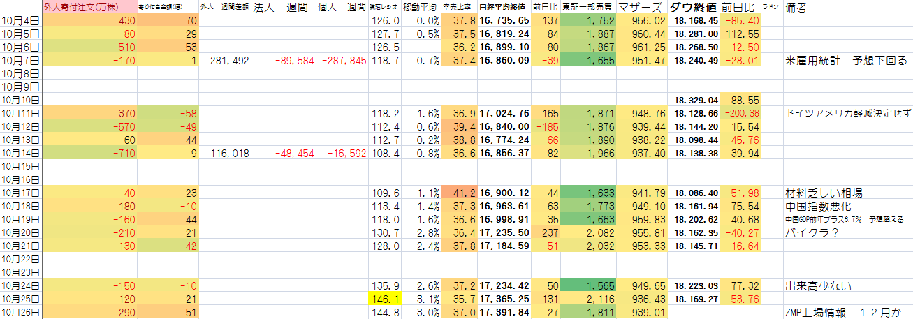 2016/10/26 - たか○さんの株式ブログ。タイトル:「データ更新」 本文:ようやくレシオが過熱状況に。こうなると相場は