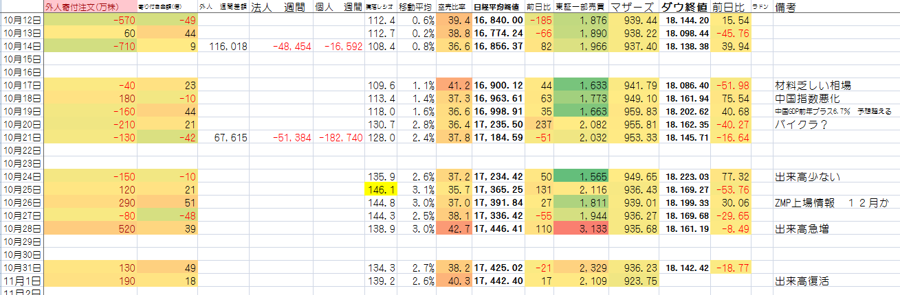 2016/11/01 - たか○さんの株式ブログ。タイトル:「お疲れ様です。更新します。」 本文:データから読み取れるのは また空売り比率が上がってる。相場が下がりそうに見える位置にいるのは事実。ただ、実際には