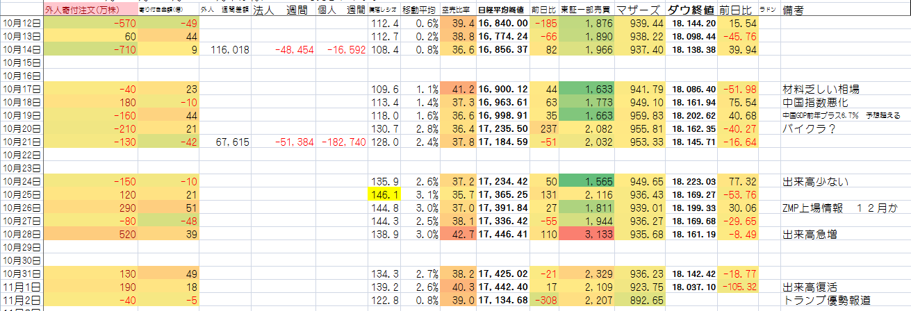 2016/11/02 - たか○さんの株式ブログ。タイトル:「データ集計」 本文:更新します。数値的にとくにこれだという特記事項話ですね。まあしいて言えば 下落の割に