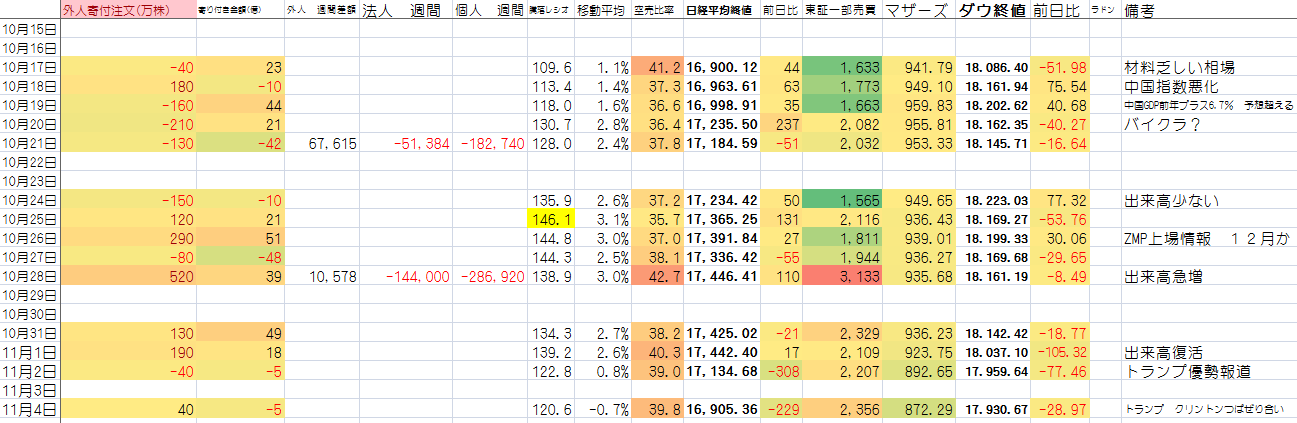 2016/11/04 - たか○さんの株式ブログ。タイトル:「更新!!」 本文:とにかく 今は 触れない状況ね。せこい小銭稼ぎしかできてないよ。売りで見てたけど入るタイミング失ったよ。また確実性がある場面になったら売るなり買うなりしよ。