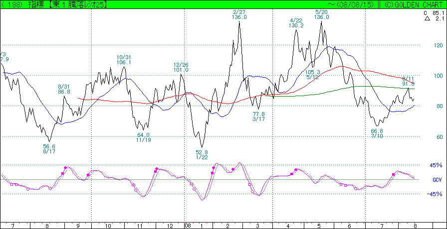 2008/08/16 - かとちゃんぺさんの株式ブログ。タイトル:「もみあいから抜け出すのはどっち」 本文:売りと思えば買い、買いと思えば売りになるような展開。 でも見破るツールもある。 GCVだ。 このことから超目先は売れない。つまり・・となる。