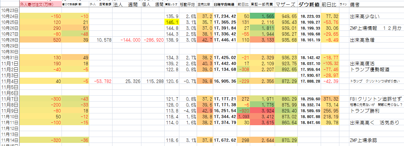 2016/11/14 - たか○さんの株式ブログ。タイトル:「方向性は変わらずか。」 本文:とりあえずやはりこういう相場は 方向性を大切にしたほうがよさそうね。思惑メインの相場だから。トランプの態度一つで 明暗が変わるかもしれない。ただ、思惑で動いている以上