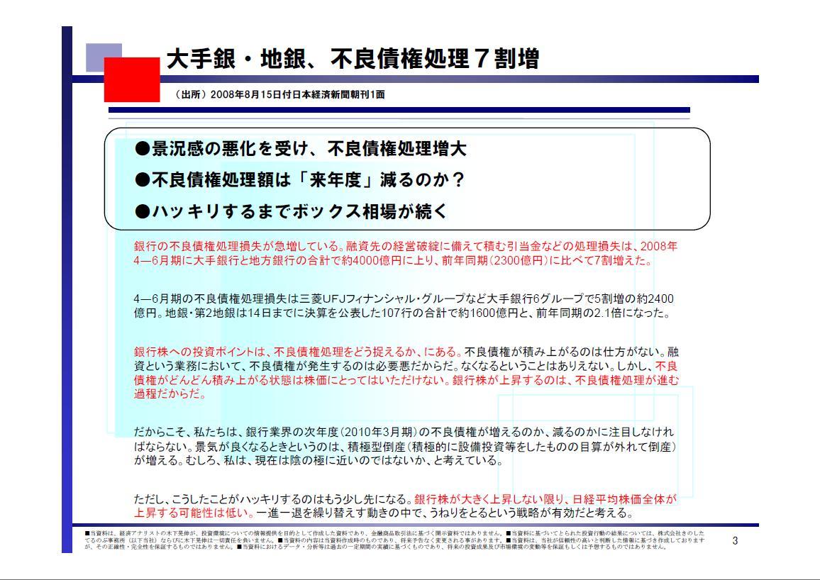 銀行株への投資ポイントは、不良債権処理をどう捉えるか、にある。