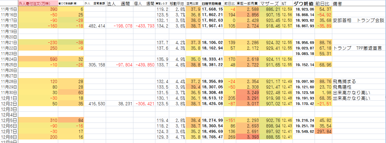 2016/12/08 - たか○さんの株式ブログ。タイトル:「結果個人がポジションダウンし 外人は・・・」 本文:これ見ると まあ金額ベース 会と売りのポジションでの差額の推移だからわかりづらいが外資は買いまくり 個人は売りまくりの状態が続いてるみたいだね。相場は時として