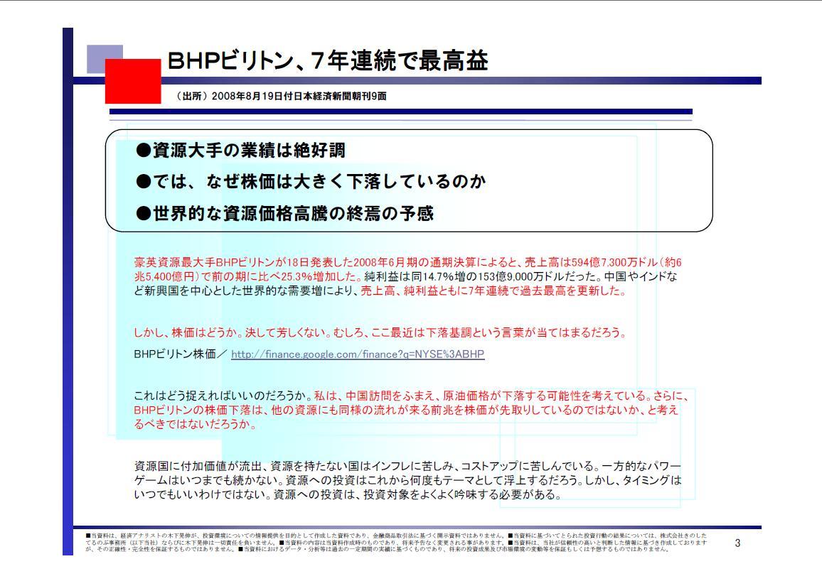さらに、BHPビリトンの株価下落は、他の資源にも