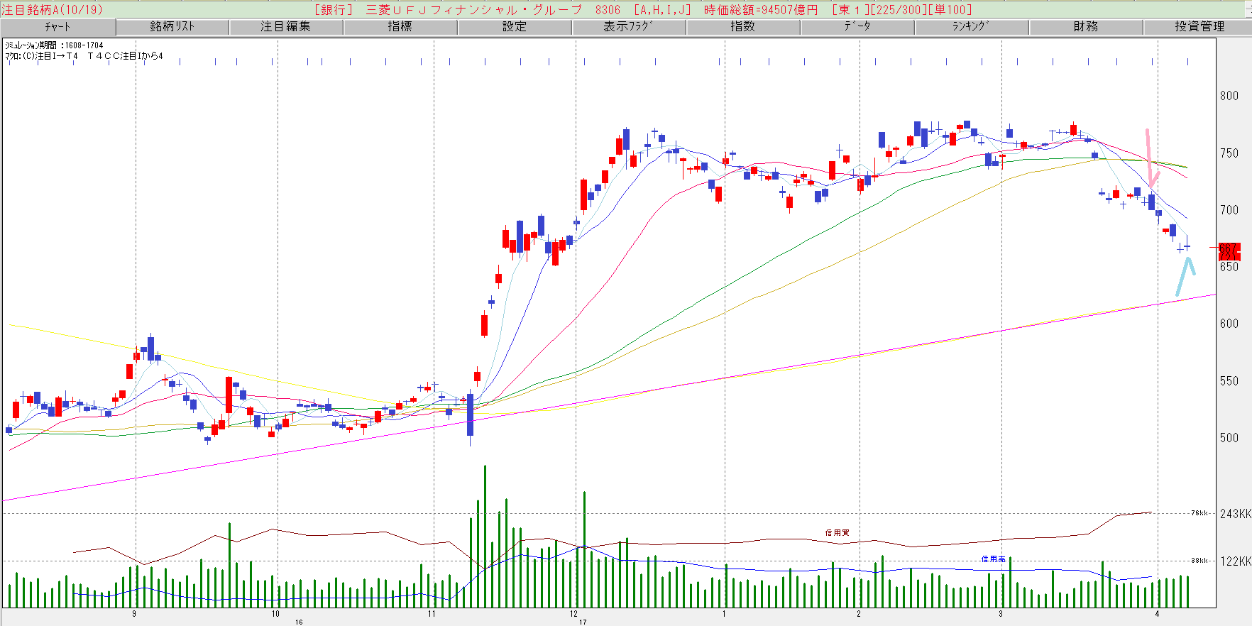 2017/04/08 - 唯我さんの株式ブログ。タイトル:「メモ」 本文:2017.04.08(土)三菱UFJ(8306) 3/31 空売り 4/07 買戻し ターゲットプライスまでいかなかった。 TS開始プライスまでは、いったんで、トレイリングにひっかかって終わり