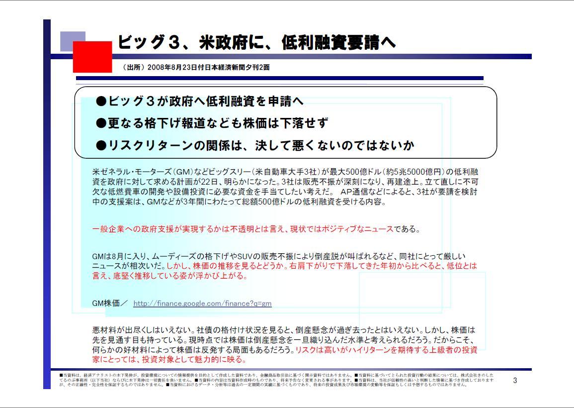 ●ビッグ3が政府へ低利融資を申請へ