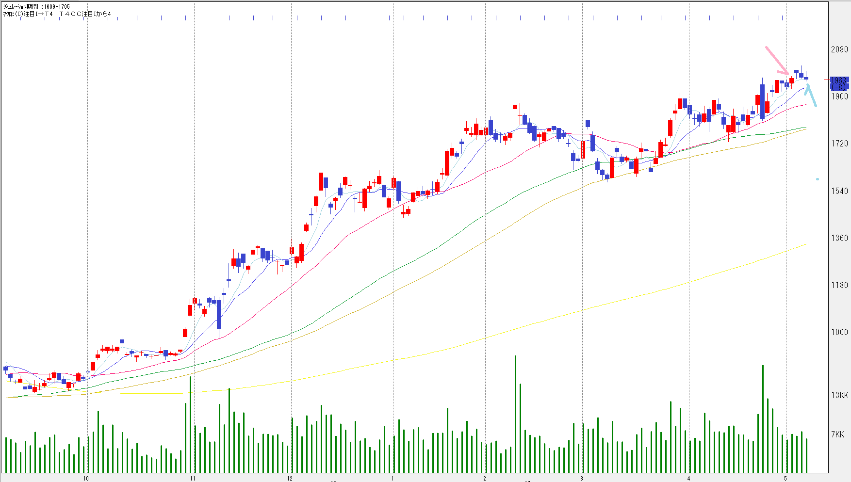 過去1年高値をぬけてきて、4/24のクソ足もぬけて、ぐずっ中