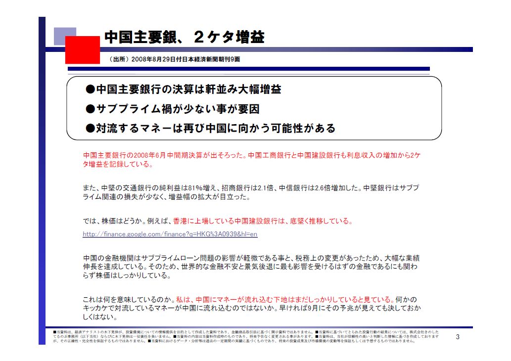 中国の金融機関はサブプライムローン問題の影響が軽微である事と、