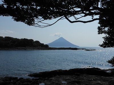 釜蓋神社から開聞岳が望めます
