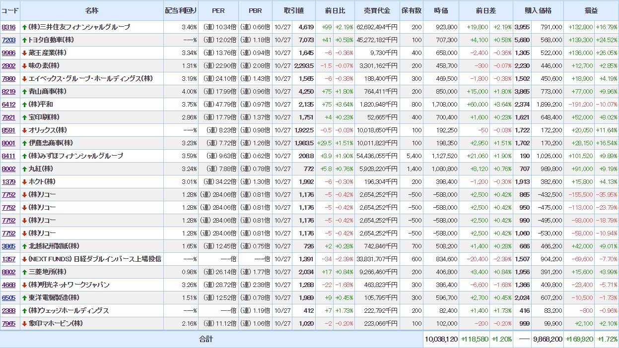 2017/10/28 - 夢想人さんの株式ブログ。タイトル:「 今週の振り返り(10/23-10/27)」 本文:10/23-10/27週の日経は、前週末21,457.64 始値 21,709.3高値 22,016.50(金曜日)安値 21,614.51(月曜日)終値