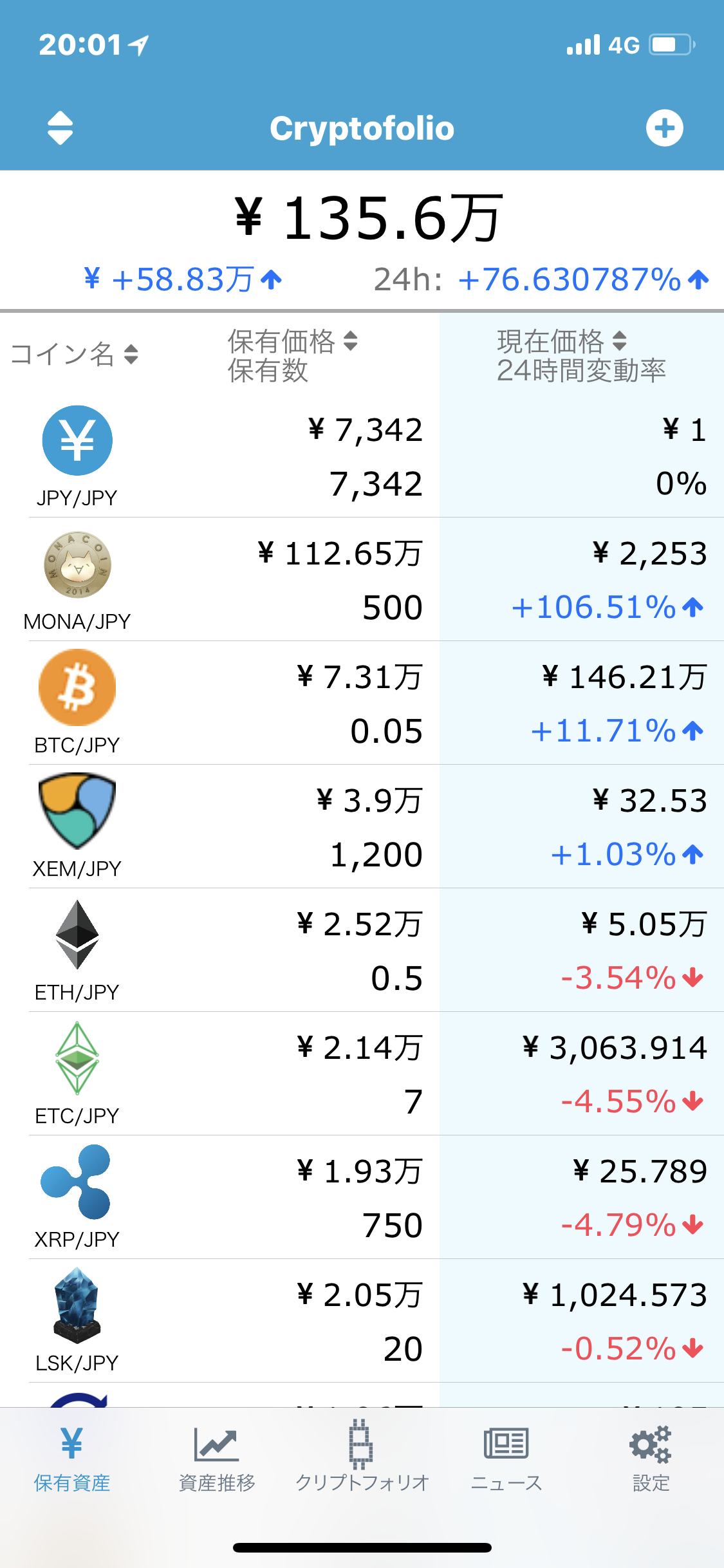 画像のように多種多様なコインを持っていますが、MONAとNEMには期待していました