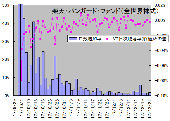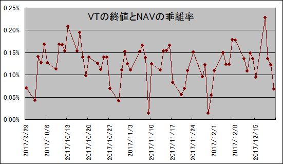 ・ファンド価格の騰落率と、VT終値の日次騰落率の差