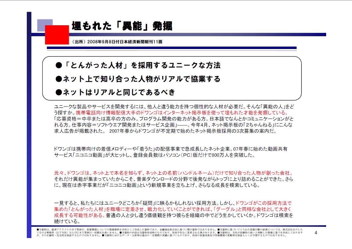 さらに、現在は赤字事業だが「ニコニコ動画」という新規事業を立ち上げ、