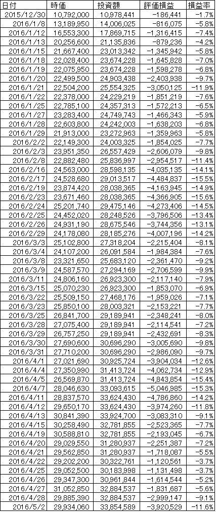 2016年の2月末の時点では、含み損が4百万円を超えているのに対し、