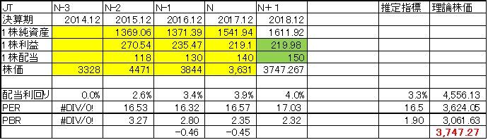 因みに、独自試算によるJTの理論株価は、3,747円