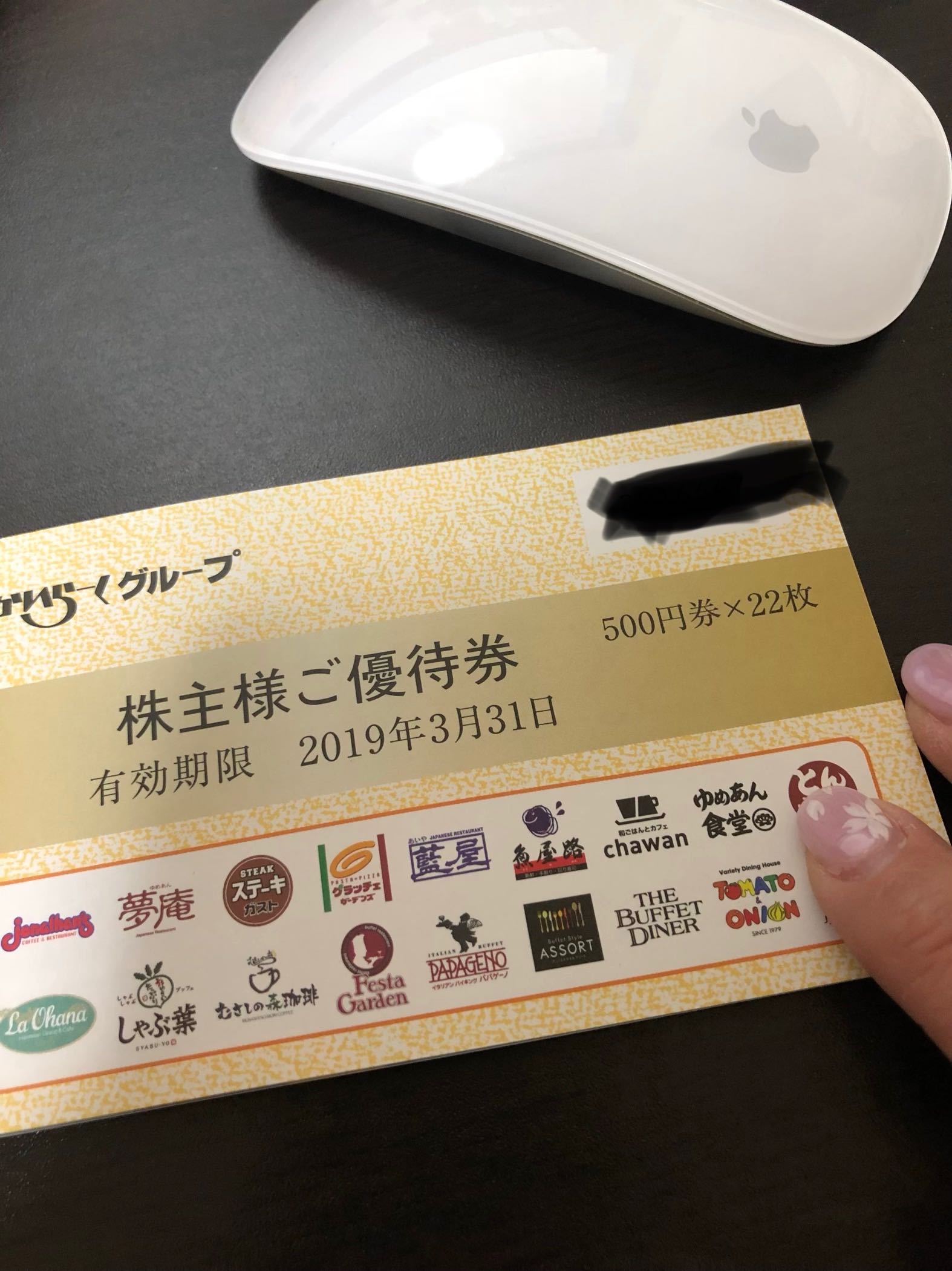 2018/03/16 - にゃいたさんの株式ブログ。タイトル:「すかいらーく優待券ゲット!」 本文:記念すべき777回目のブログは、本日到着したすかいらーく優待券です(* _ *)ノ半期で11000円分次は6月ですね次に500株になっているかは株価次第でしょうか(^_^;)