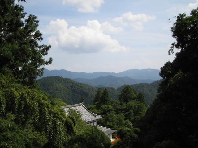 鞍馬駅を出るとすぐに鞍馬寺の山門。そこからケーブルカーもあるのですが、途中の由岐神社とかも見たかったので足で登り始めたらこれがとてつもない山登り!持ってきたポカリスエットを飲みながらヒイヒイ登ると、上が鞍馬寺の本殿。ここはいい眺めでした。宇宙のエネルギーが集まる・・・なんてのもわかる気がします。