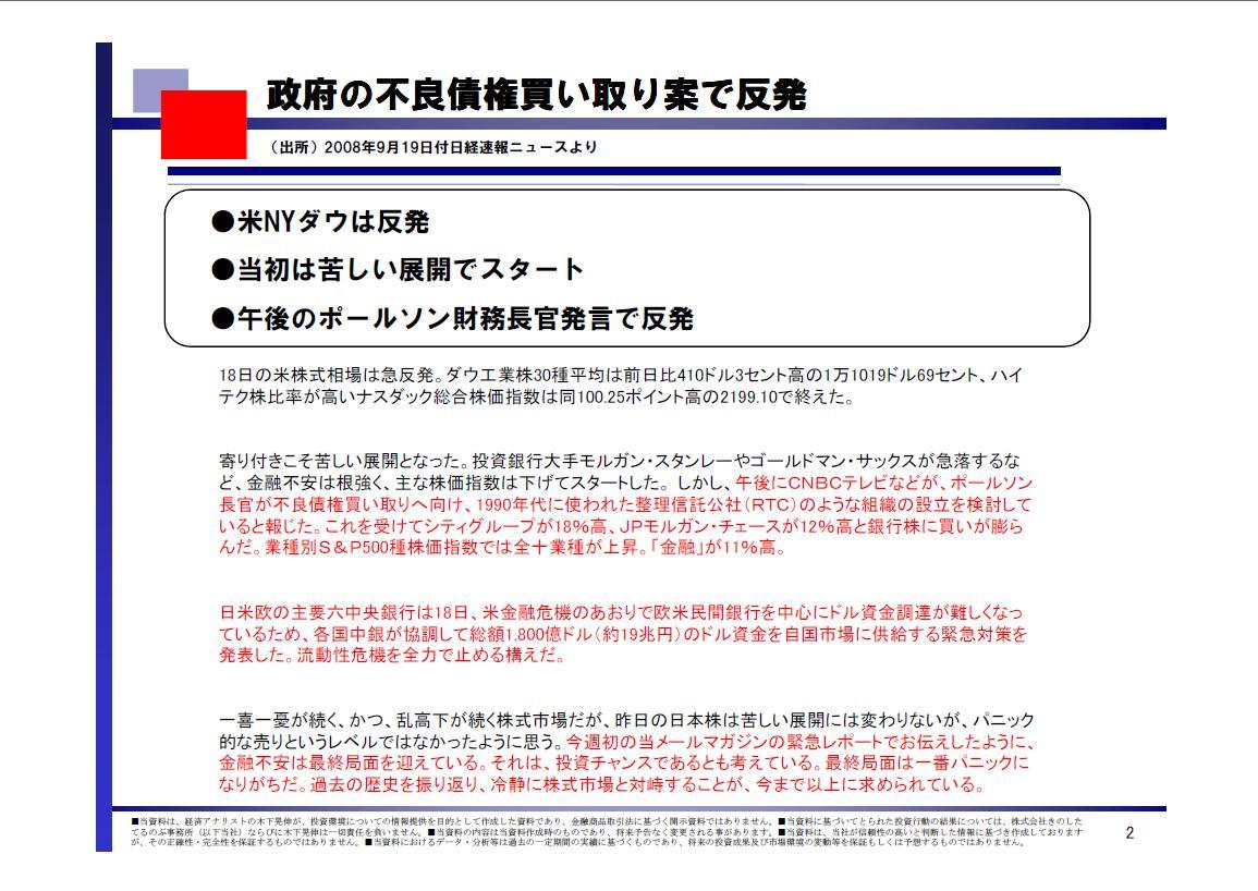 米政府が不良債権処理機関の設立を検討していることなどが伝わったのを受け、