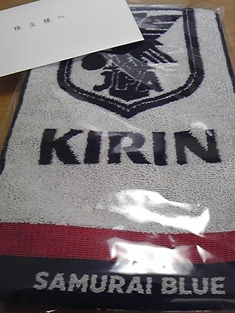 2020/05/30 - びびずさんの株式ブログ。タイトル:「キリンホールディングスの株主優待♪」 本文:本日、受け取りました。今年は、サッカー日本代表応援グッズのマフラータオルにしてみました。早く皆さんが現地でフツーにスポーツ観戦できる世の中に戻るとイイですね。ただ、アベノマスクとか10万円は届いてませ