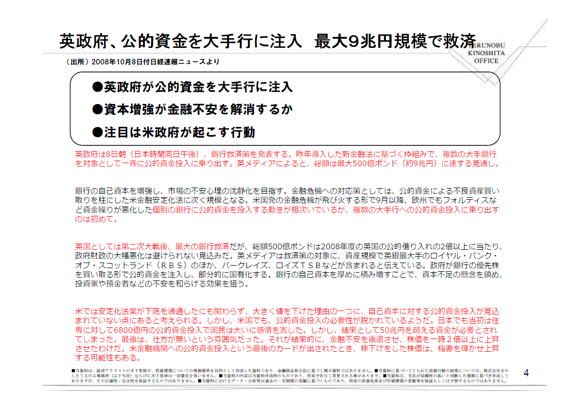 次ページで詳細をお伝えするが、英国で公的資金投入が開始されようとしている。
