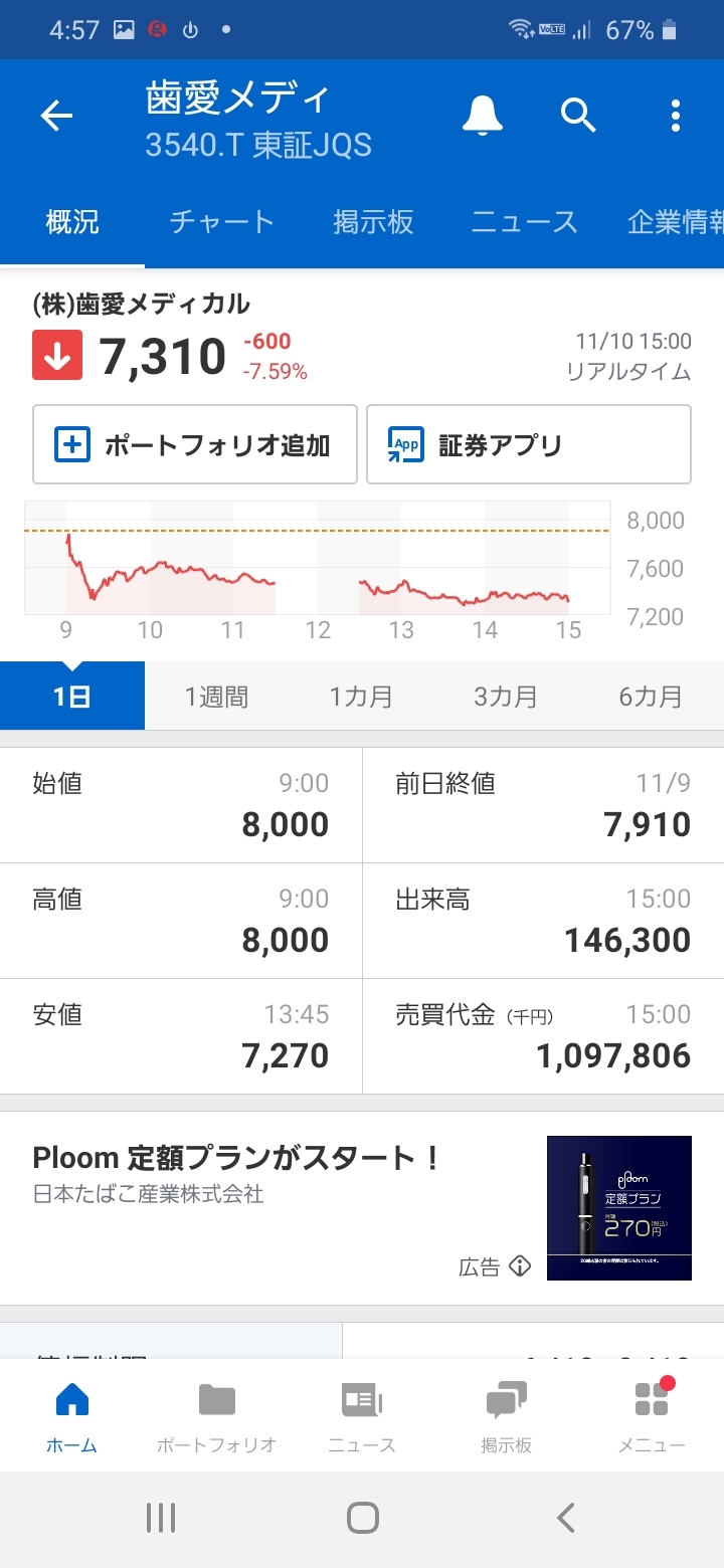 2020/11/11 - アンドレアグリーンさんの株式ブログ。タイトル:「11/10 決算を控えてます」 本文:決算発表は15時半から