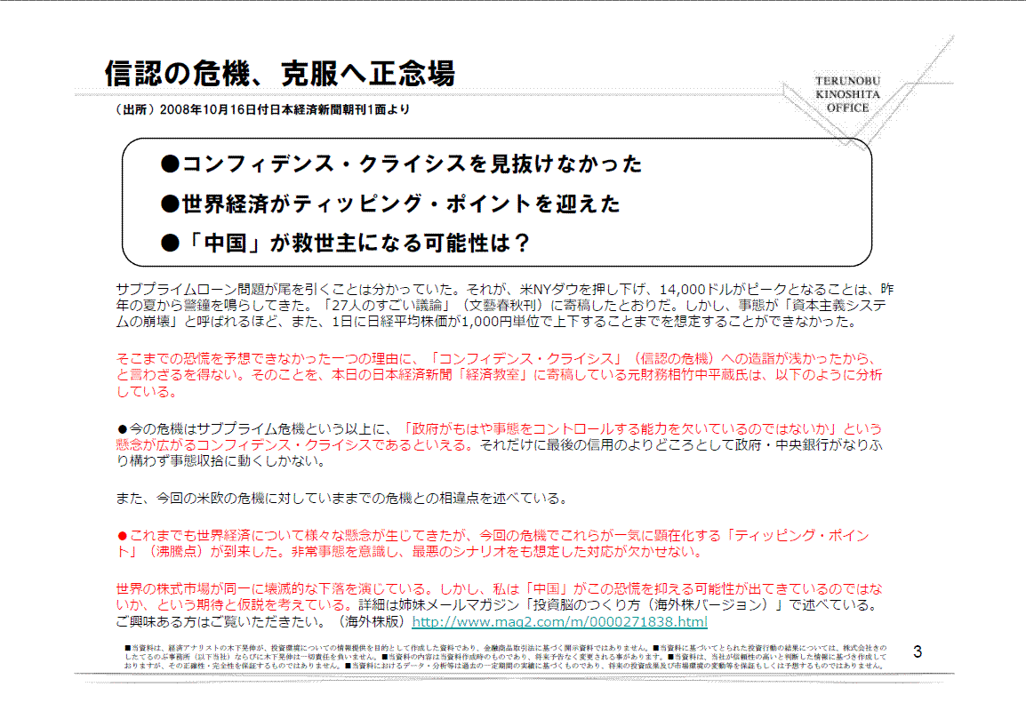 (出所)2008年10月16日付日本経済新聞朝刊1面より