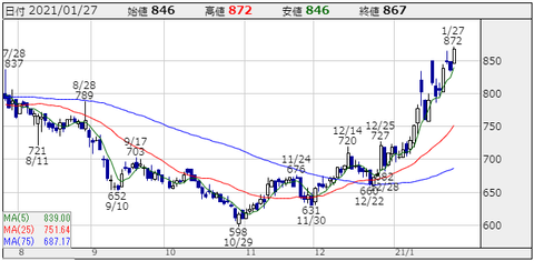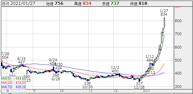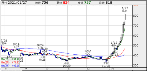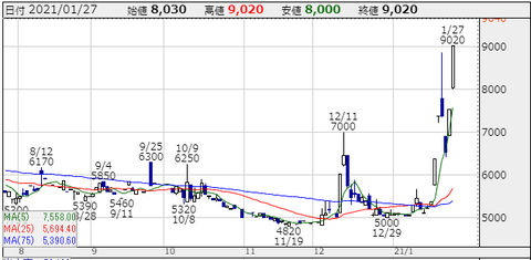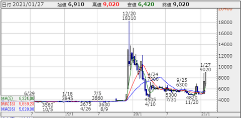 年明けからこういった銘柄に入れたら最高…って感じですが、2021年の相場は始まったばかりですからね!むしろここから株価倍増って銘柄は数多くでてくると見ていますよ!