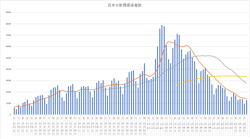 2月16日(火) の日本感染データも超長期はよこよこに