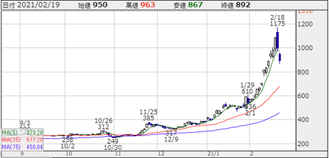 今日の相場は株価右肩上がりの急騰を続けていた仮想通貨関連【8698】マネックスが続落という感じになりましたね。