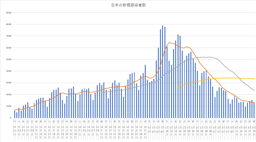 株が動くと思ったら銘柄はちょっとの上昇で(いちおう逆行高だったのかな?)利確は進まず、動かないと思っていたドルがどろどろ下がって買い下がり。夜中に多少反発はしたようだが持ち越してしまいました。感染者数はヨコヨコで、どちらさんもまた来週(^^)/・・・株とドルは上がって、患者数は順調に減りますように。