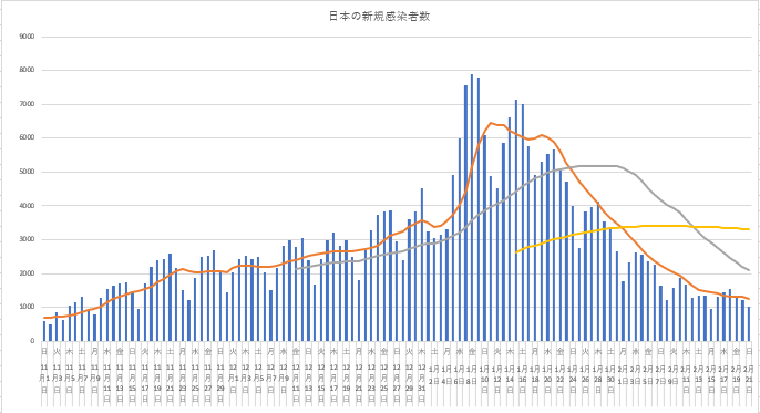 2021/02/22 - りす栗さんの株式ブログ。タイトル:「2月21日(日)までの東京都と日本の感染データ」 本文:東京都について、宿泊や自宅待機を参考に書いていて、変化がなくなってきたので、見やすくするために、入院の中軽症、宿泊、自宅待機などを合計した1行にしました。                     2月