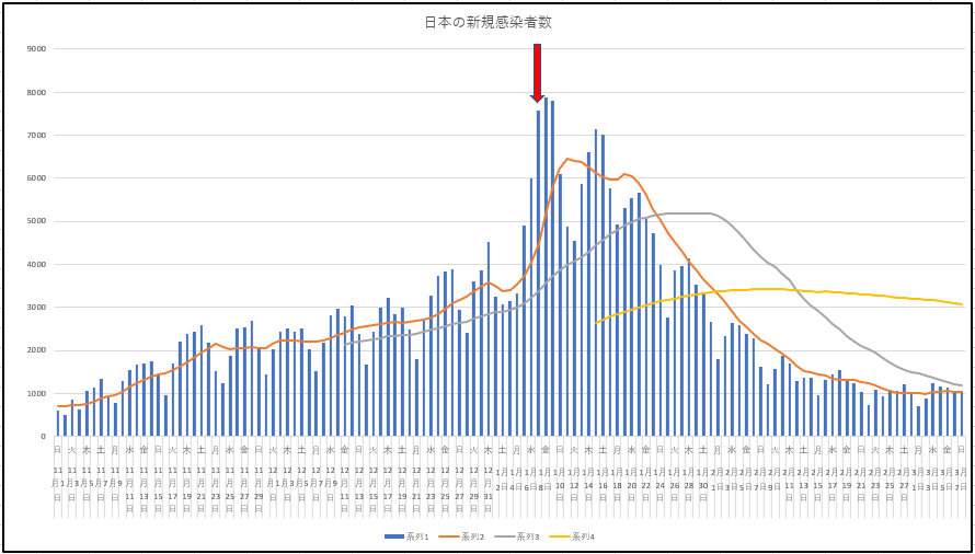 2021/03/08 - りす栗さんの株式ブログ。タイトル:「3月7日) 1日遅れの感染データ」 本文:またまたビールとワインで爆睡してしまい、翌朝に記載。こんな調子だと、コロナ禍が癒えるころ、わたしの肝臓はフォアグラに・・・・(-^^-)?データは、いつものように東京都の新規感染と入院患者数の推移のグ