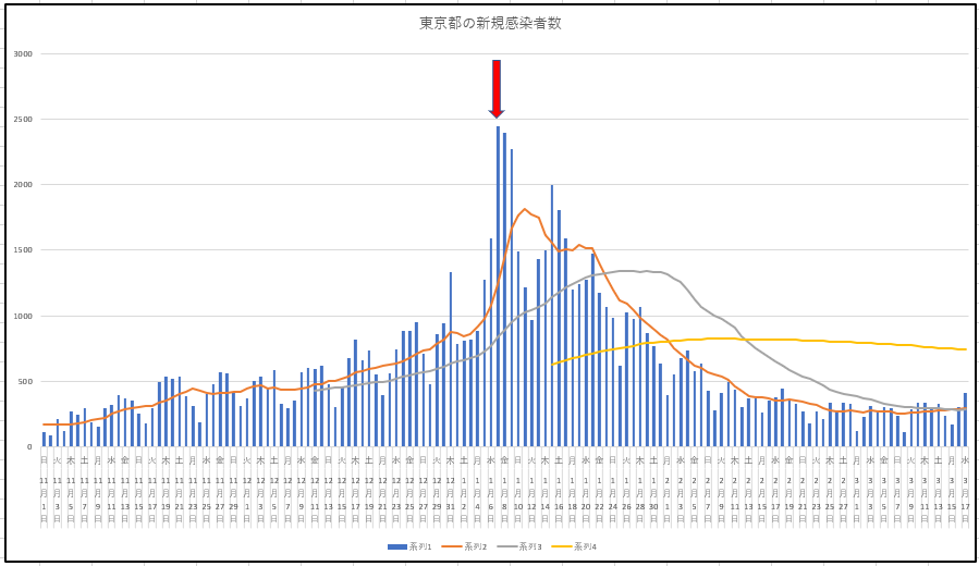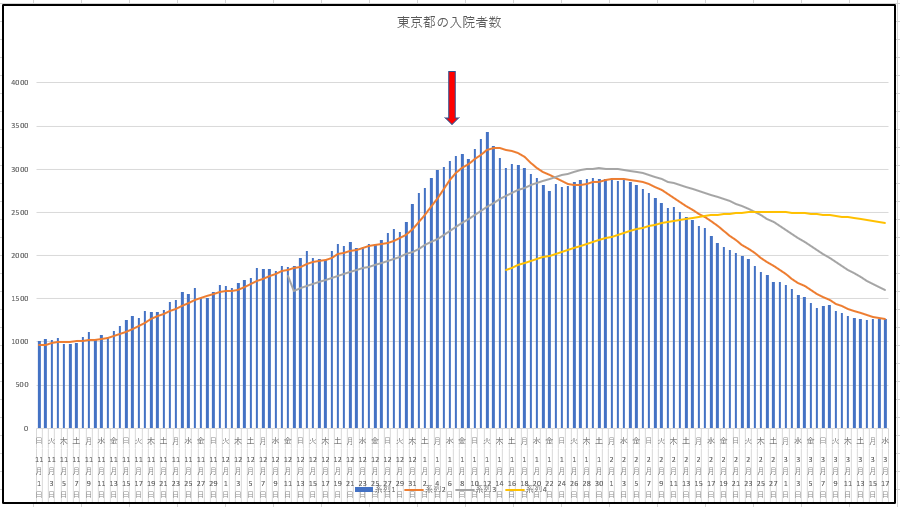 2021/03/18 - りす栗さんの株式ブログ。タイトル:「3月17日(水) 感染データ」 本文:東京都の新規感染と入院患者数の推移。やはり週中に向けてじわりと上昇。18日は魔の木曜日だけど大丈夫?